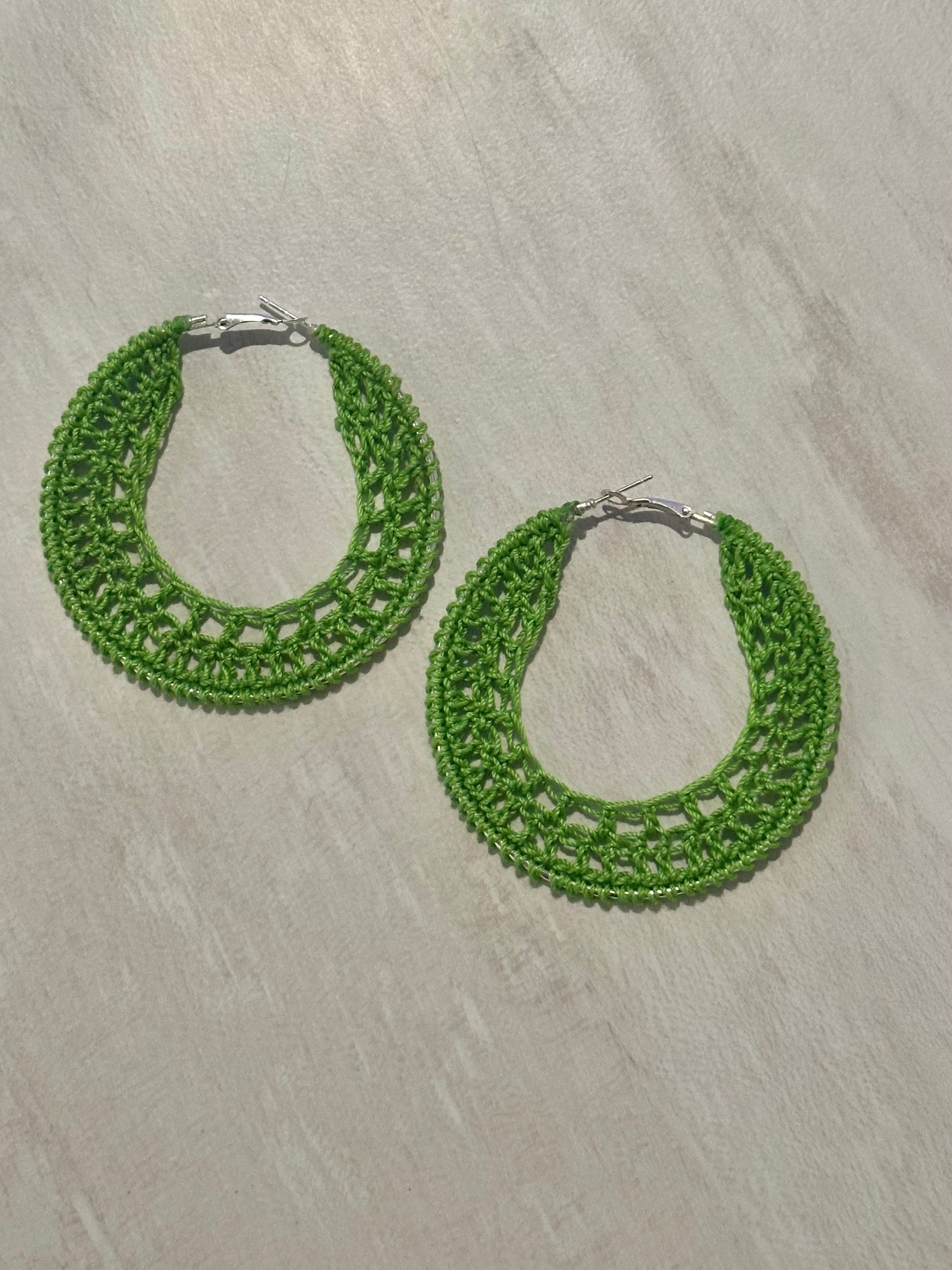 Lime green crochet earrings